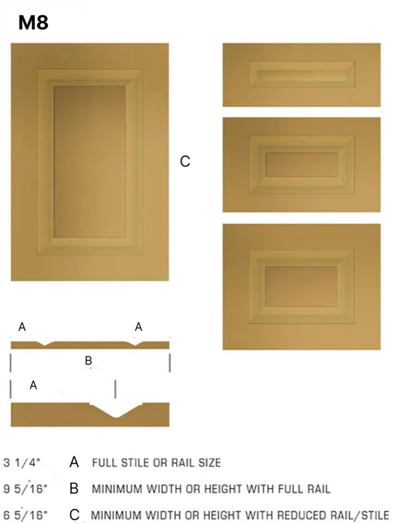 Looking to add some more detail or dimension to your doors? Lovech offers 10 styles of outside edge profiles that you can add to your doors and drawers – keep in mind, they will eat into your flat rail dimension. Otherwise, you can simply specify “None” and our standard doors will come with a straight edge, slightly softened by our sanding process. Please make sure to specify your selection at the time of ordering.