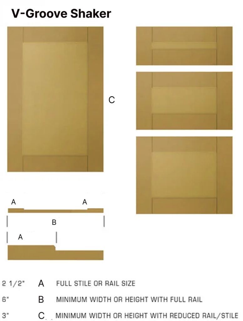 Our V-Line Shaker includes a 1/4″ deep recessed centre panel